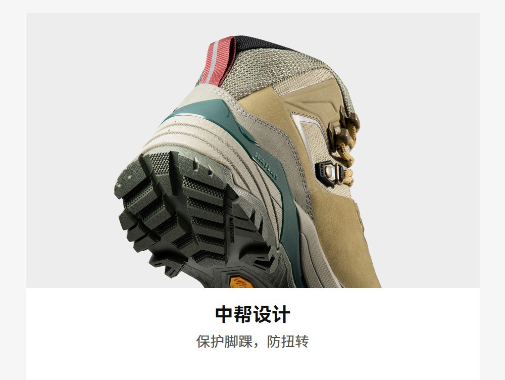 طراحی ساق دار با ارتفاع میانبرش بهطور ویژه برای حفاظت از مچ پا در برابر پیچ خوردگی و فشارهای ناگهانی در مسیرهای سخت انجام شده است. این ارتفاع مناسب، آزادی حرکت و انعطاف مچ را حفظ میکند اما همزمان پشتیبانی کافی را فراهم می آورد؛ ویژگی ای که برای عبور از شیب های نامنظم و مسیرهای صعب العبور ضروری است. در قسمت رویه نیز از چرم نوبوک ۱.۶۸ میلیمتری استفاده شده که علاوه بر زیبایی و حس طبیعی، مقاومت عالی در برابر سایش، پارگی و ضربه دارد. این چرم بادوام برای کوهنوردانی که بهدنبال کفشی طول عمری و قابل اعتماد هستند، یک انتخاب ایدهآل است.